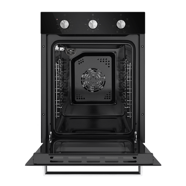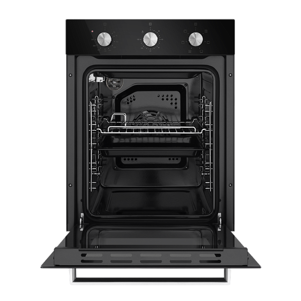 HOMSair OEF451BK работает в широком температурном диапазоне: от 50 до 250 °C. Это позволяет создавать самые разнообразные кулинарные шедевры от безе и томленого мяса до изделий из несдобного дрожжевого теста. В комплекте противень и решетка. Дверца с двойным стеклом располагает большим прозрачным окошком, внутри предусмотрена подсветка, поэтому наблюдать за ходом приготовления просто и безопасно: все хорошо видно, а, если случайно прислониться, не настолько горячо, чтобы обжечься.
