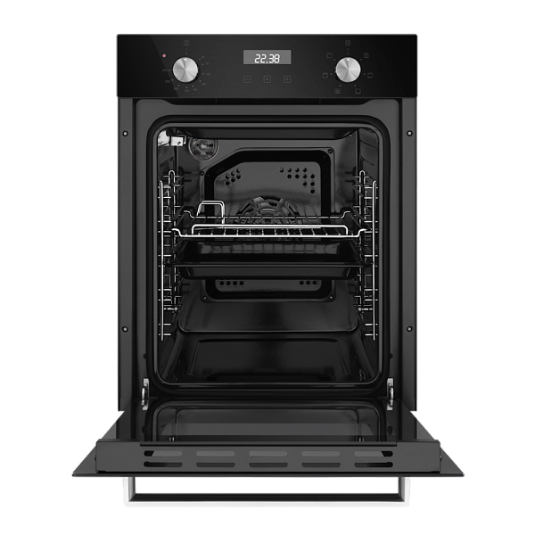 HOMSair OEM451BK поддерживает температуру от 50 до 250 °C. В этот диапазон укладываются практически все блюда. Выбор режима и температуры осуществляется при помощи поворотных переключателей. Есть таймер, настраивающийся при помощи сенсорных кнопок. Когда он не используется, на дисплее отображается текущее время.