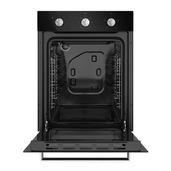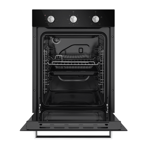 HOMSair OES456BK работает в широком температурном диапазоне (от 50 до 250 °C). В него укладываются практически любые блюда. Можно даже сушить фрукты, ягоды или грибы и выпекать ремесленный хлеб. Управление осуществляется при помощи поворотных переключателей. Есть таймер, способный сообщить о том, что блюдо пора вынимать или добавить к нему очередной ингредиент.