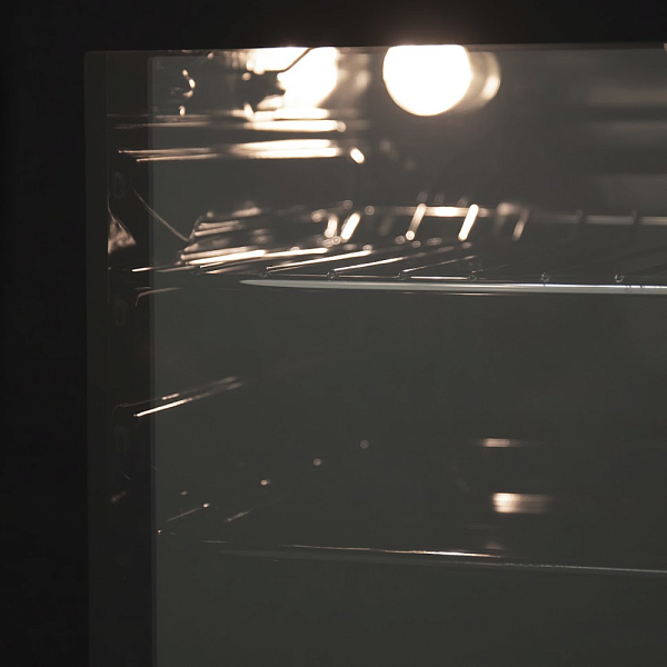 HOMSair OES657BK использует откидную дверцу с двойным стеклом, которое защищает внешнюю поверхность дверцы от нагревания. Для этой цели внутри духовки используется вентилятор охлаждения, который распределяет воздух по камере, не допуская выхода тепла за пределы камеры. Внутренняя поверхность камеры покрыта эмалью, обладающей легкой очисткой. Она не имеет пор, что позволяет ей отталкивать воду, грязь и жир.