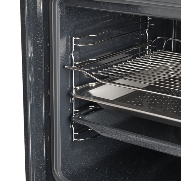 Пиролитическая очистка используется для серьёзных загрязнений. В процессе пиролиза рабочая камера нагревается до 500 градусов. Под действием температуры, жир, частички пищи и пр. превращаются в пепел. После остывания духовки остатки в виде пепла можно стереть влажной мягкой тряпочкой или губкой. При минимальных временных затратах и усилиях с пиролитической очисткой ваш шкаф всегда будет выглядеть, как новый.