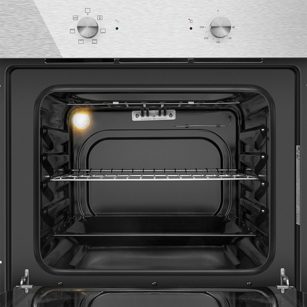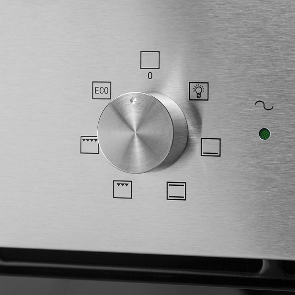 Подсветка духовки. Яркое внутреннее освещение делает процесс приготовления блюд ещё приятнее. Вы всегда сможете видеть состояние готовящихся блюд , контролировать их готовность, даже не открывая шкафа. Традиционный нагрев. Для выпекания и жарки на одном уровне. Работают верхний и нижний нагревательные элементы. Малый гриль. Этот метод приготовления пищи позволяет использовать только внутреннюю часть верхнего элемента нагрева, который направляет тепло вниз на еду. Эта функция подходит для приготовления на гриле маленьких кусочков бекона, мяса, тостов и т. д. Нижний нагрев. Используется для блюд, требующих длительного и медленного пропекания, например, для приготовления блюд в горшочках. Полный гриль. Этот метод приготовления пищи использует внутреннюю и внешнюю части верхнего нагревательного элемента, который направляет тепло вниз на еду. Эта функция подходит для гриля средних или больших частей сосисок, бекона, стейк