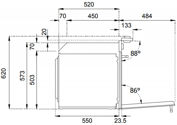 В камере 5 уровней, на которых можно расположить противни и решетки. На одном из этих уровней можно установить телескопические направляющие, которые идут в комплекте. Они выдвигаются вместе с противнем, что делает работу легче и безопаснее.