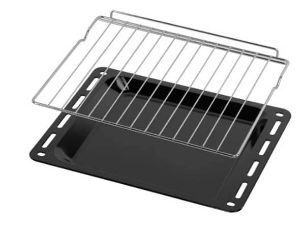 Внутренний объем рабочей камеры составляет 60 литров, что позволяет приготовить большое количество пищи за один раз. В комплект входят стандартный противень и решетка. Внутреннее освещение помогает контролировать процесс приготовления и не открывать дверцу шкафа. Дверца оснащена тремя стеклами, что обеспечивает дополнительную безопасность и энергоэффективность. Максимальная входная мощность устройства составляет 2400 Вт, а мощность гриля - 2300 Вт. Напряжение в сети должно составлять 220-240 В, а частота - 50-60 Гц. Класс энергопотребления - А, что говорит о высокой энергоэффективности и экономичности использования.