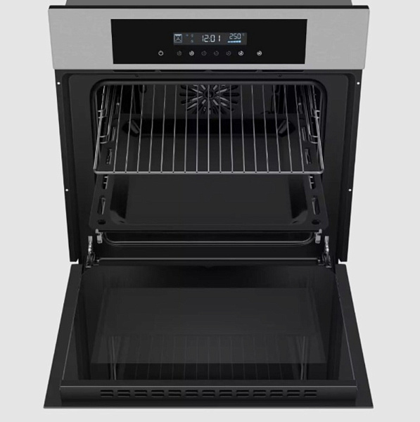 Объем 60 л при стандартных размерах 60 см позволяет готовить одновременно несколько блюд, разместив решетку или противень на одном из 5 уровней боковых направляющих.