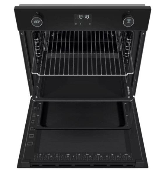 Простота управления, легкий уход за духовкой, дополнительная безопасность и защита от случайного изменения настроек — все это благодаря поворотными переключателями, которые не только обладают лаконичным дизайном, но и имеют встроенный дисплей для отображения температуры и режима приготовления.