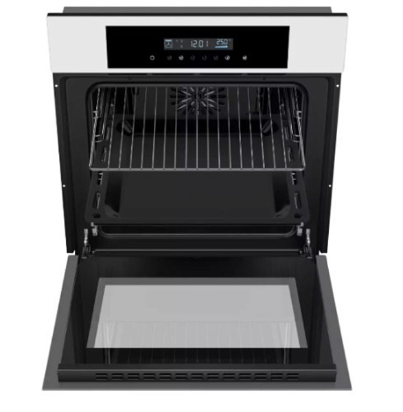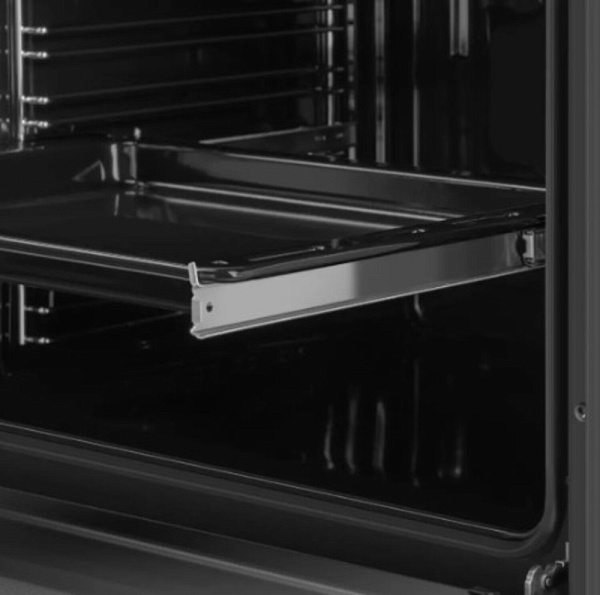 Объем 60 л при стандартных размерах 60 см позволяет готовить одновременно несколько блюд, разместив решетку или противень на одном из 5 уровней боковых направляющих.