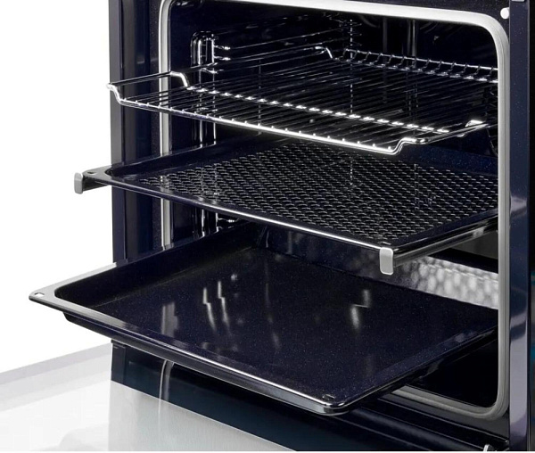 Пиролитическая очистка используется для серьёзных загрязнений. В процессе пиролиза рабочая камера нагревается до 500 градусов. Под действием температуры, жир, частички пищи и пр. превращаются в пепел. После остывания духовки остатки в виде пепла можно стереть влажной мягкой тряпочкой или губкой. При минимальных временных затратах и усилиях с пиролитической очисткой ваш шкаф всегда будет выглядеть, как новый.
