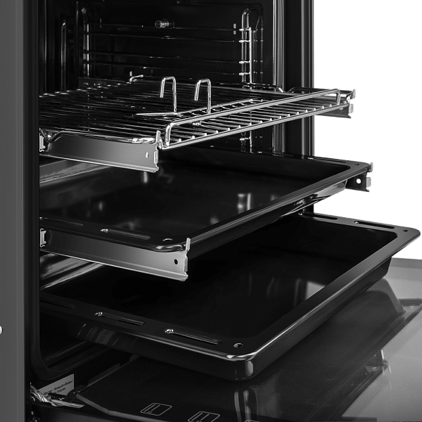 Пиролитическая очистка используется для серьёзных загрязнений. В процессе пиролиза рабочая камера нагревается до 500 градусов. Под действием температуры, жир, частички пищи и пр. превращаются в пепел. После остывания духовки остатки в виде пепла можно стереть влажной мягкой тряпочкой или губкой. При минимальных временных затратах и усилиях с пиролитической очисткой ваш шкаф всегда будет выглядеть, как новый.