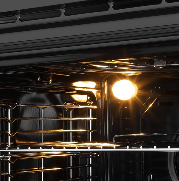 Одной из особенностей духового шкафа является наличие гриля. Это значительно расширяет возможности приготовления различных блюд, добавляя к ним золотистую корочку и ароматный вкус. Внутреннее освещение обеспечивает отличный обзор всего, что происходит внутри печи, даже при закрытой дверце.