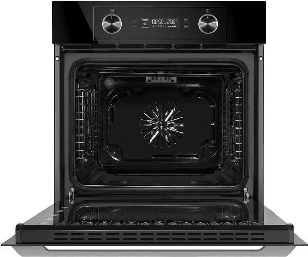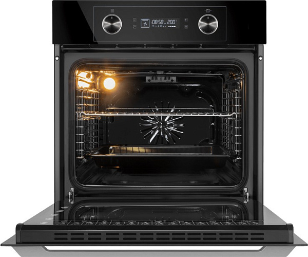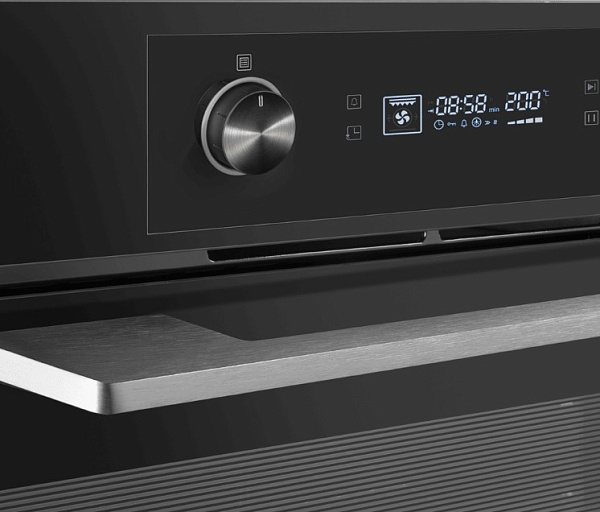 Управление духовым шкафом осуществляется электронно, что обеспечивает точность и удобство в использовании. Цифровой дисплей отображает все необходимые параметры и позволяет легко контролировать процесс приготовления. Таймер помогает точно соблюдать время приготовления и избежать пережаривания или недоваривания блюд.