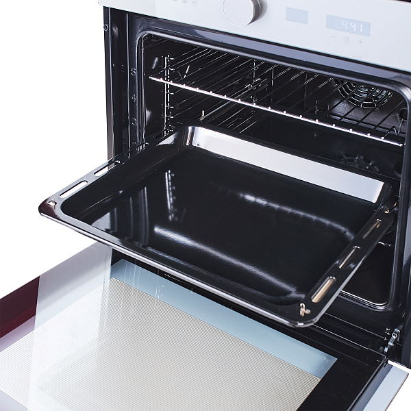 Тройное стекло дверцы обеспечивает термозащиту, предотвращая нагрев внешней поверхности. Внутреннее стекло легко снимается, а эмаль легкой очистки упрощает уход за духовкой.