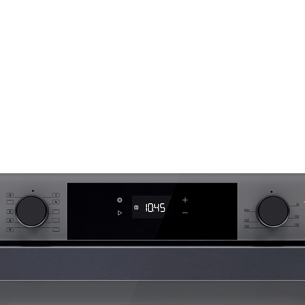 Точная настройка для удобного использования Смешанное управление сочетает сенсорные и механические элементы, обеспечивая точную регулировку параметров. LED-дисплей отображает все необходимые данные, а цифровой таймер помогает задать точное время готовки. Хромированные телескопические направляющие добавляют удобства, позволяя безопасно размещать и извлекать противни на нужной высоте.