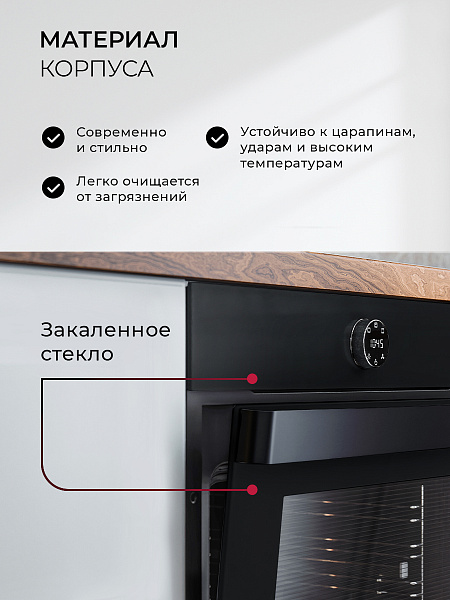 Черный цвет придает духовке элегантность и строгость, делая ее стильным акцентом в современном интерьере.
