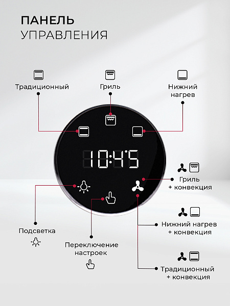 Интуитивное управление для вашего удобства Комбинированная система управления, объединяющая сенсорные и механические элементы, позволяет легко настраивать необходимые параметры. LED-дисплей четко отображает текущие настройки, а цифровой таймер обеспечивает точный контроль процесса приготовления.