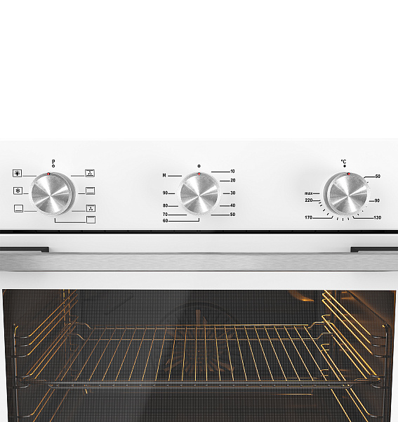 Максимально простое управление интуитивно понятно и не требует тщательного изучения инструкции. Все режимы работы, регулировка температуры и установка времени осуществляются посредством специальных утапливаемых переключателей. Такое решение упрощает чистку поверхности шкафа и исключает возможность случайного изменения заданных параметров. Есть отдельные программы по размораживанию, опции нижнего и верхнего подогрева.