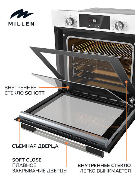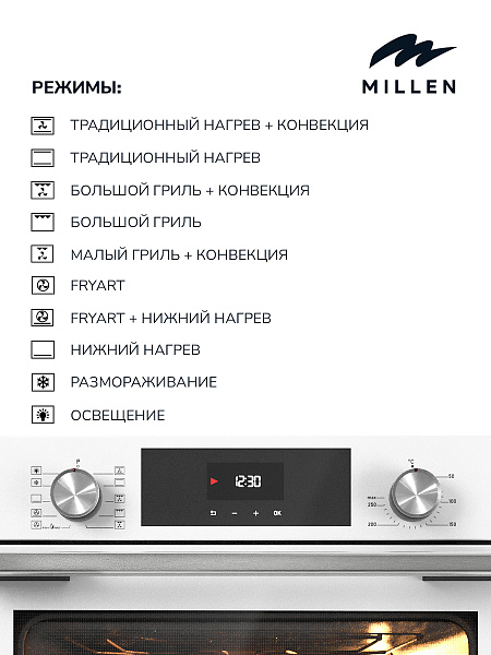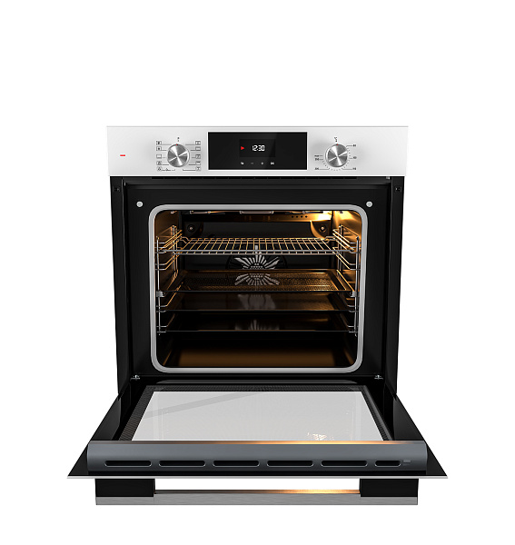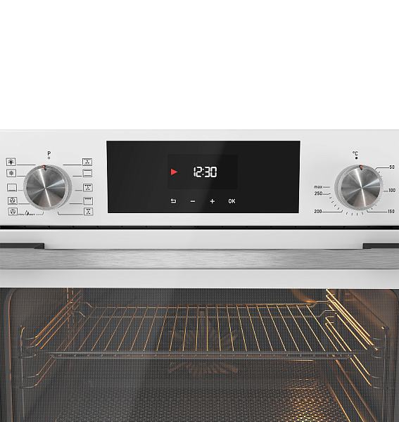 Управление реализовано посредством удобных утапливаемых переключателей на корпусе. Изменение температуры и режима работы доступно в любой момент. Рабочая камера подсвечивается, предоставляя возможность контролировать процесс приготовления без необходимости открытия дверцы шкафа.