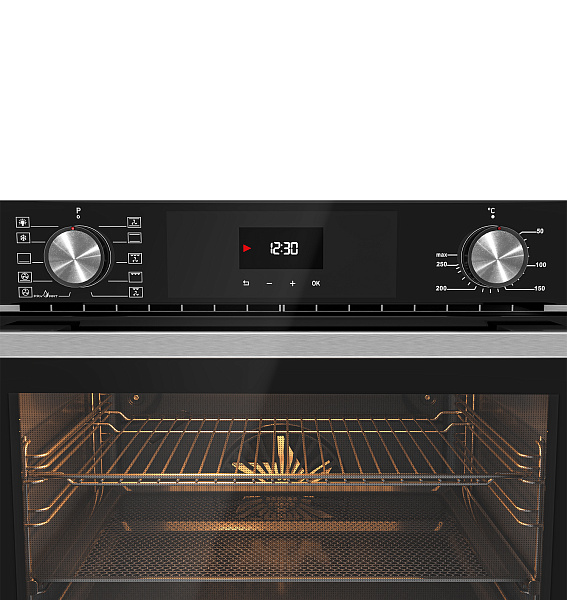 Пиролитическая очистка используется для серьёзных загрязнений. В процессе пиролиза рабочая камера нагревается до 500 градусов. Под действием температуры, жир, частички пищи и пр. превращаются в пепел. После остывания духовки остатки в виде пепла можно стереть влажной мягкой тряпочкой или губкой. При минимальных временных затратах и усилиях с пиролитической очисткой ваш шкаф всегда будет выглядеть, как новый.