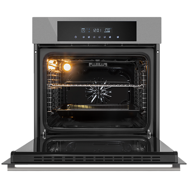 Пиролитическая очистка используется для серьёзных загрязнений. В процессе пиролиза рабочая камера нагревается до 500 градусов. Под действием температуры, жир, частички пищи и пр. превращаются в пепел. После остывания духовки остатки в виде пепла можно стереть влажной мягкой тряпочкой или губкой. При минимальных временных затратах и усилиях с пиролитической очисткой ваш шкаф всегда будет выглядеть, как новый.