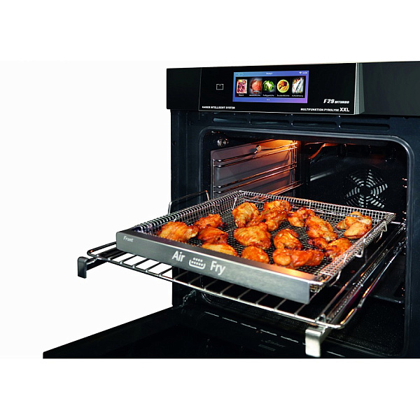Пиролитическая очистка используется для серьёзных загрязнений. В процессе пиролиза рабочая камера нагревается до 500 градусов. Под действием температуры, жир, частички пищи и пр. превращаются в пепел. После остывания духовки остатки в виде пепла можно стереть влажной мягкой тряпочкой или губкой. При минимальных временных затратах и усилиях с пиролитической очисткой ваш шкаф всегда будет выглядеть, как новый.