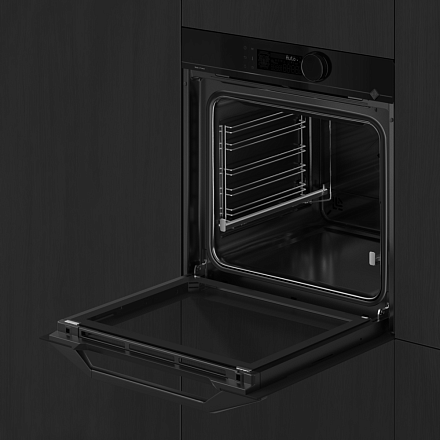 Внутренняя поверхность дверцы полностью стеклянная, что облегчает ее очистку. Дверца оснащена системой плавного закрывания "Soft-close", что предотвращает случайные удары и повреждения. Внутренний объем шкафа составляет 73 литра, что позволяет готовить большие порции еды для всей семьи.