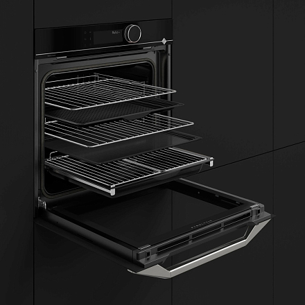 Электронное управление обеспечивает удобство эксплуатации. Дисплей и сенсорные кнопки делают процесс управления еще более простым и понятным. Дверца с системой плавного закрывания «Soft-close» и четырехслойным стеклом гарантирует безопасное и комфортное использование.