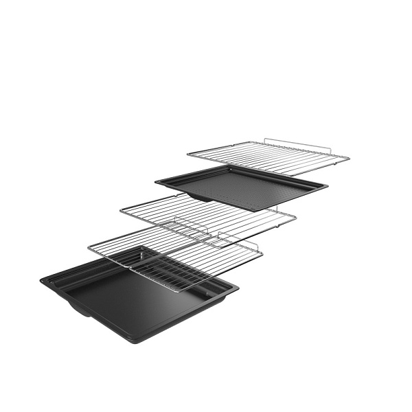 В комплекте идут телескопические направляющие, решетка, термощуп, глубокий и мелкий противни, а также противень с аэрофритюром AirFry. Очистка осуществляется пиролитическим методом. Устройство обладает классом энергопотребления A+, что делает его энергоэффективным. Мощность подключения составляет 3.385 кВт, а мощность гриля — 2.1 кВт. Напряжение составляет 220-240 В, а частота тока — 50-60 Гц. Длина сетевого кабеля — 115 см. Оснащено защитой от детей для обеспечения безопасности.