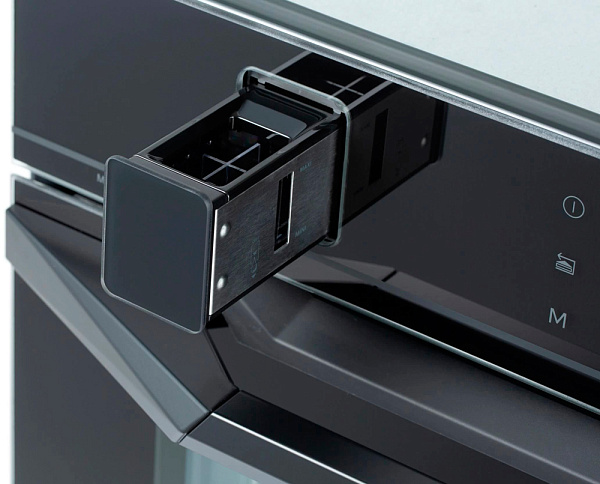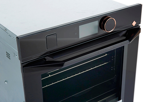 Особенности дизайна и внешней панели управления — также важный пункт при выборе духовки на кухню. В данной модели нужно обратить внимание на цвет — черный, охлаждение двери, чтобы поверхность и мебель вокруг не нагревались.