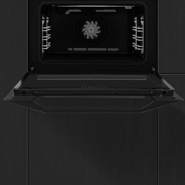 Особенности дизайна и внешней панели управления — также важный пункт при выборе духовки на кухню. В данной модели нужно обратить внимание на цвет — черный, охлаждение двери, чтобы поверхность и мебель вокруг не нагревались. Электронная панель управления позволяет быстро разобраться в настройке программ и не требует чрезмерных усилий.