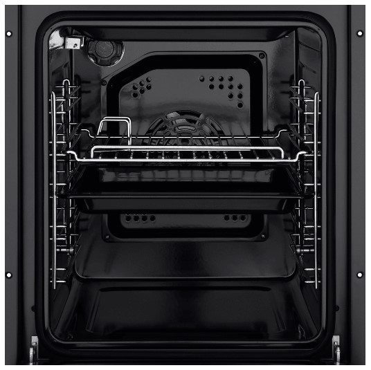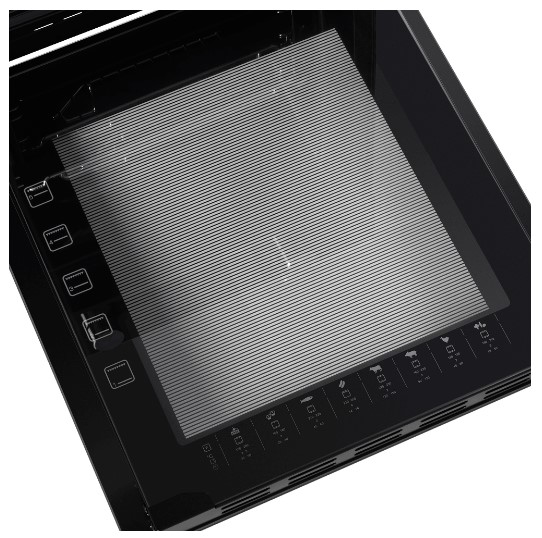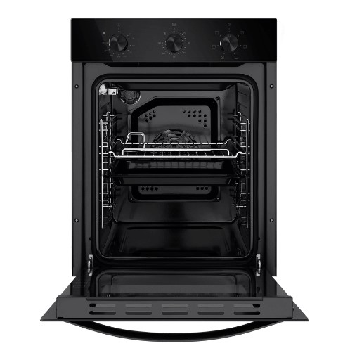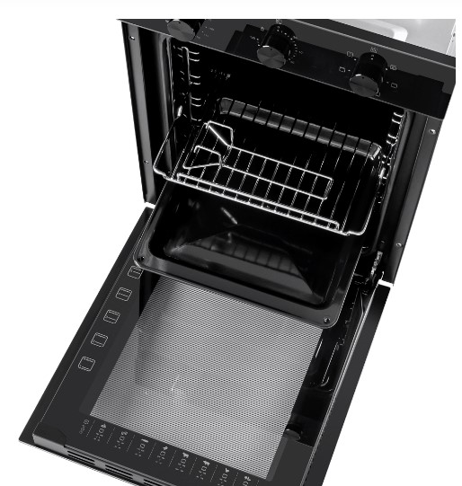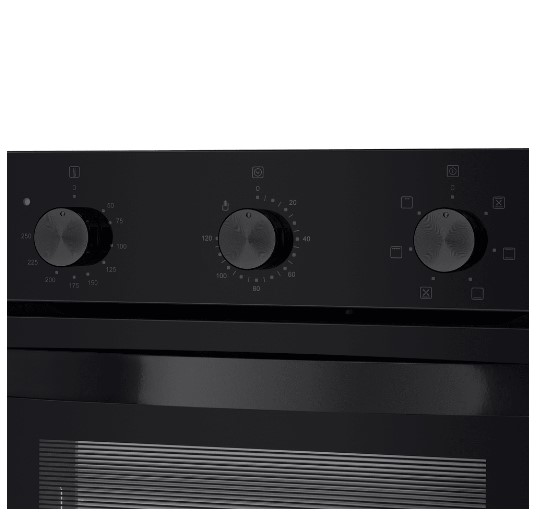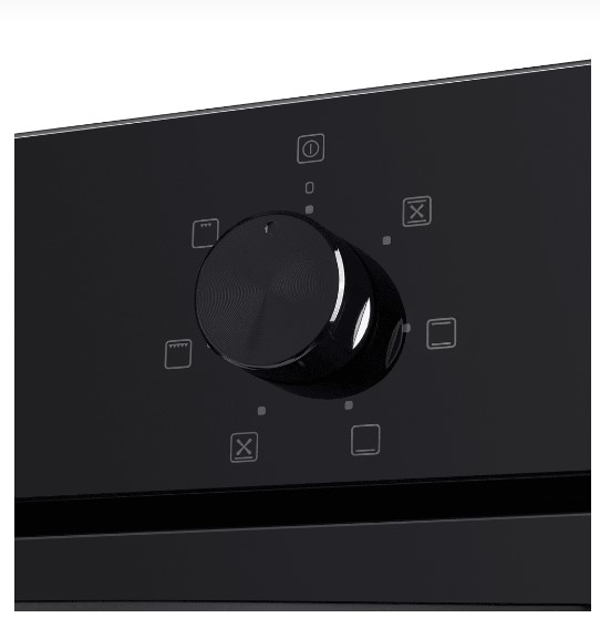 Противень и решетку можно установить на любом из пяти уровней. В комплект входит прихват для противня. Дверца состоит из двух стекол и не нагревается во время готовки. Это снижает риск ожогов. Управление механическое. На рабочей панели расположены три утапливаемых поворотных переключателя. С их помощью легко настроить нужную температуру, таймер и режим. Поверхность корпуса матовая. На ней не остаются отпечатки пальцев. Вам не придется тратить много времени на уборку.
