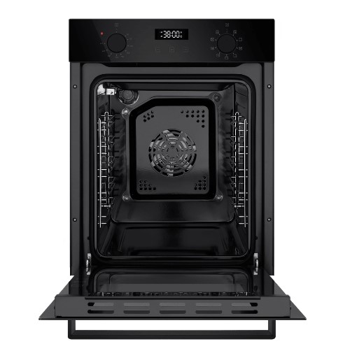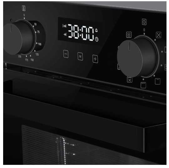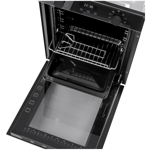 Комбинированное управление реализовано в виде сенсорного дисплея и поворотных ручек PUSH PULL, которые легким нажатием убираются внутрь корпуса. Можно выбрать режим работы, температуру (50°-250°C), установить таймер и блокировку от детей. В данной модели есть 9 режимов: верхний/нижний нагрев, усиленная конвекция, гриль/верхний нагрев/конвекция, разморозка, гриль/верхний нагрев, гриль, конвекция с нижним нагревом, нижний нагрев, интенсивная выпечка, освещение.