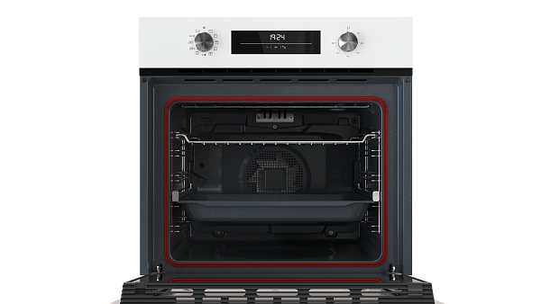 Пиролитическая очистка используется для серьёзных загрязнений. В процессе пиролиза рабочая камера нагревается до 500 градусов. Под действием температуры, жир, частички пищи и пр. превращаются в пепел. После остывания духовки остатки в виде пепла можно стереть влажной мягкой тряпочкой или губкой. При минимальных временных затратах и усилиях с пиролитической очисткой ваш шкаф всегда будет выглядеть, как новый.