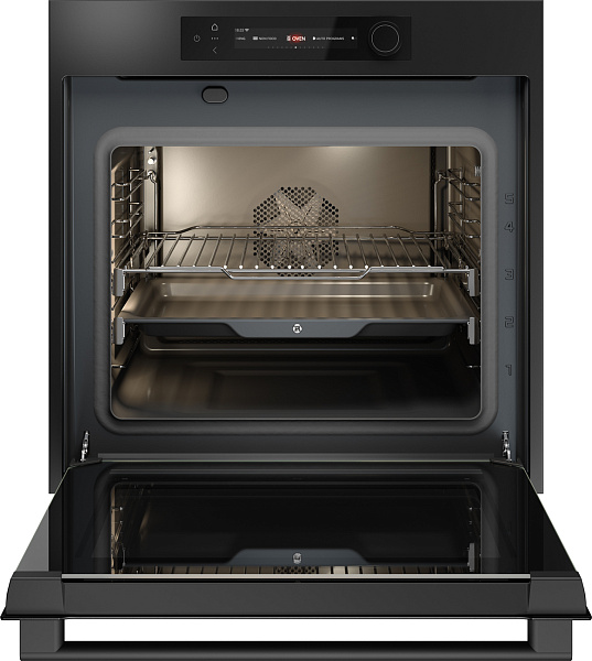 Духовой шкаф оснащен 96 автоматическими программами, таймером, функцией отложенного старта и возможностью сохранения пользовательских настроек. Дверца с тройным остеклением и системой охлаждения остается прохладной снаружи даже при высокой температуре внутри.