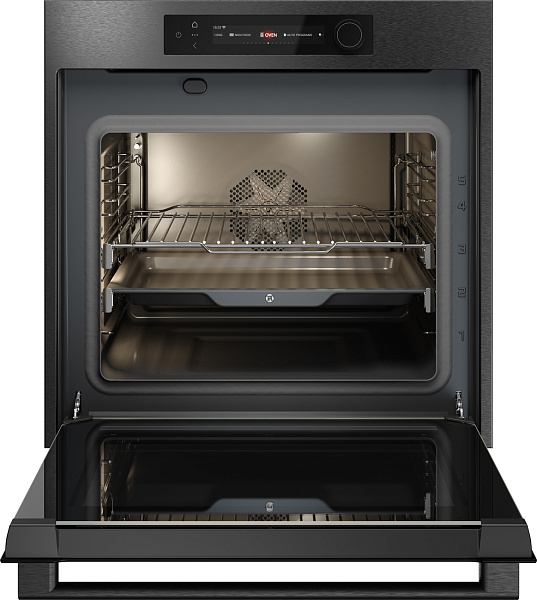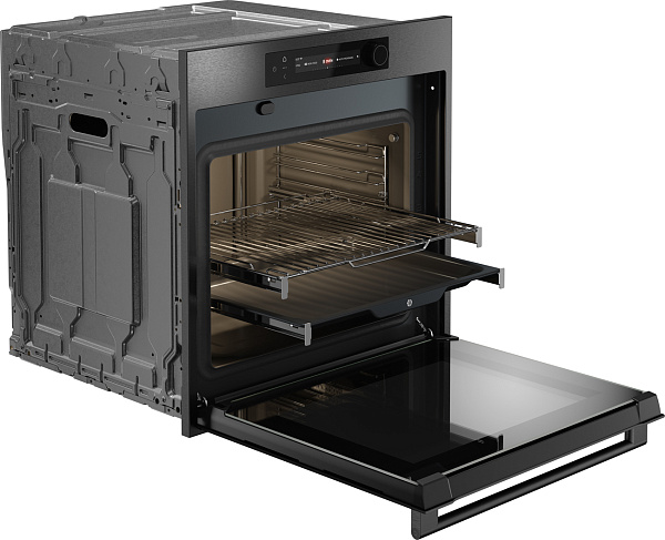 Духовой шкаф оснащен 96 автоматическими программами, таймером, функцией отложенного старта и возможностью сохранения пользовательских настроек. Дверца с тройным остеклением и системой охлаждения остается прохладной снаружи даже при высокой температуре внутри.