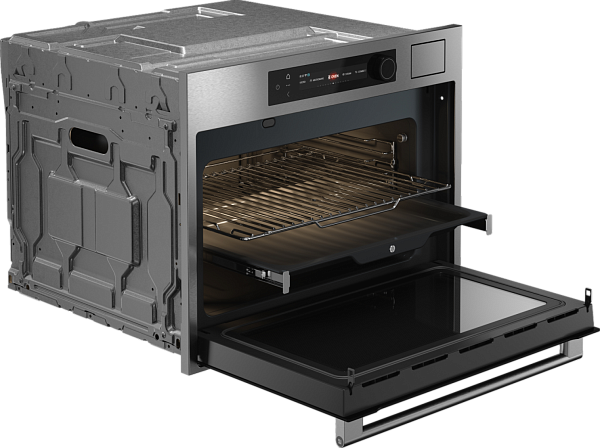 Внутри предусмотрены телескопические направляющие на одном уровне, а также премиальная боковая подсветка, обеспечивающая отличную видимость. Дверца оснащена механизмом плавного открывания и закрывания, а тройное остекление гарантирует безопасность при использовании.