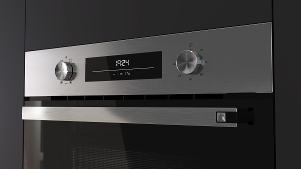 Объём шкафа — 70 литров, температурный диапазон — от 50 до 250 °C. Среди особенностей — макси-гриль мощностью 2500 Вт, рельефное дно камеры с углублением для воды (для чистки Hydroclean), двухслойная термоизолированная дверца с одним съёмным внутренним стеклом. В комплекте идут глубокий противень с защитой от переворачивания, противень для выпечки и стандартная решётка.