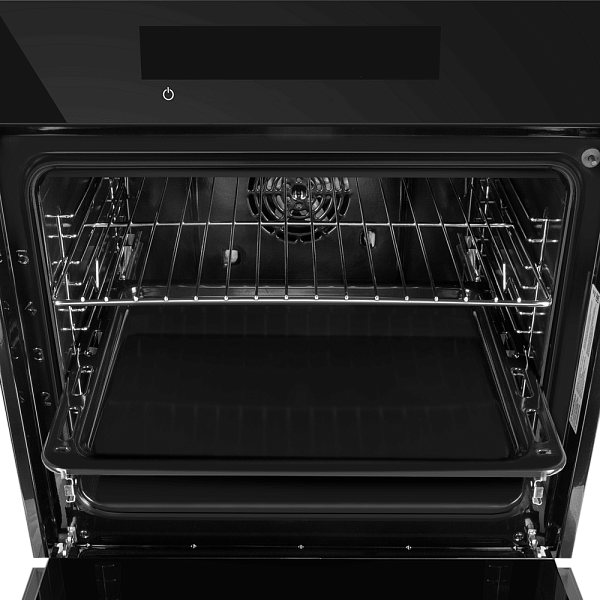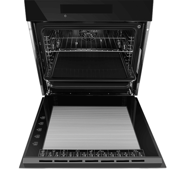 Прибор обладает строгим и элегантным дизайном, который подчеркивает тонкая металлическая ручка с логотипом бренда. Трёхслойная стеклянная дверца надёжно удерживает тепло и обеспечивает безопасный обзор благодаря внутренней подсветке. Внутренняя камера на 76 литров покрыта прочной эмалью легкой очистки, что делает обслуживание духовки простым и быстрым.