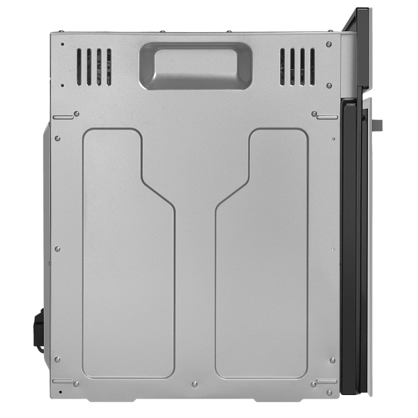Прибор обладает строгим и элегантным дизайном, который подчеркивает тонкая металлическая ручка с логотипом бренда. Трёхслойная стеклянная дверца надёжно удерживает тепло и обеспечивает безопасный обзор благодаря внутренней подсветке. Внутренняя камера на 76 литров покрыта прочной эмалью легкой очистки, что делает обслуживание духовки простым и быстрым.