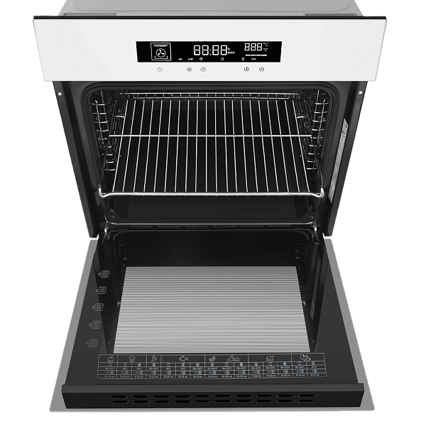 Полезным дополнением являются рецепты, нанесённые на внутреннюю сторону дверцы, служащие удобной шпаргалкой. Несмотря на увеличенный объём, духовой шкаф сохраняет высокий класс энергоэффективности А, обеспечивая мощность до 3250 Вт при экономичном потреблении энергии.