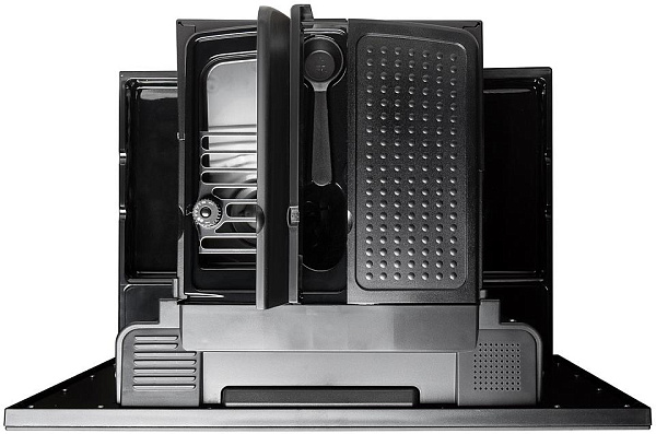 Контейнер для зёрен рассчитан на 220 г, резервуар для воды — на 1,8 л. На дисплее отображается информация о выбранных настройках, уровне воды и кофе. Автоматическое ополаскивание запускается после каждого цикла, сохраняя чистоту внутренних каналов. Программа декальцинации удаляет накипь без усилий со стороны пользователя.