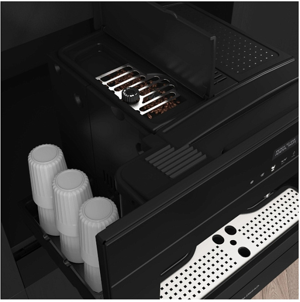 Полностью автоматическое приготовление кофе обеспечивает помпа с давлением 15 бар и мощность 1350 Вт. Сенсорные клавиши и информативный дисплей позволяют выбрать тип напитка — от эспрессо до капучино и макиато, — отрегулировать степень помола, температуру и количество воды. Встроенный капучинатор подаёт пар для вспенивания молока и приготовления молочных напитков. Индикаторы уровня воды и кофе вовремя напомнят о необходимости пополнения.