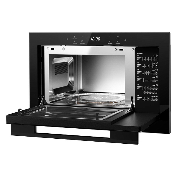 Мощность микроволн достигает 900 Вт, что позволяет быстро разогревать и готовить блюда, а пять уровней мощности дают возможность подбирать режимы под разные продукты. Объём камеры составляет 25 литров и оснащён поворотным столом, равномерно распределяющим тепло. Также предусмотрены автоматические программы и встроенные часы, а таймер помогает точно контролировать процесс приготовления. Несмотря на функциональность, модель остаётся энергоэффективной: мощность подключения составляет всего 1400 Вт.