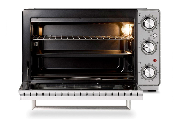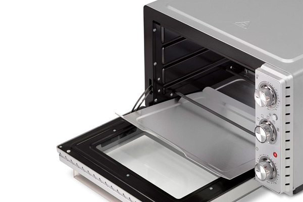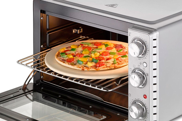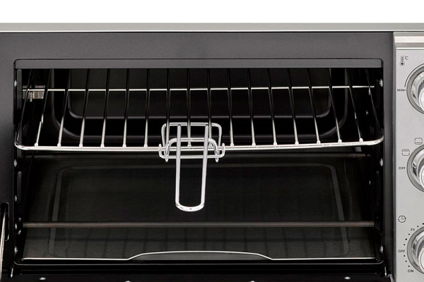 В комплект входят решетка для гриля, вертел, противень с антипригарным покрытием, приспособления для извлечения решетки для гриля и вращающегося вертела, камень для пиццы