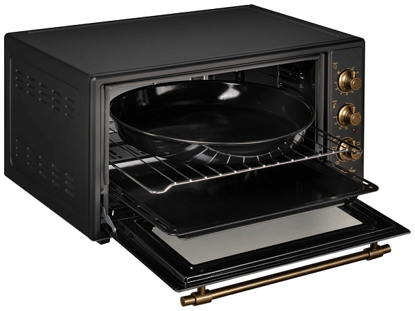 В комплектацию мини-печи входят решетка и противень, которые можно использовать для приготовления различных блюд.
