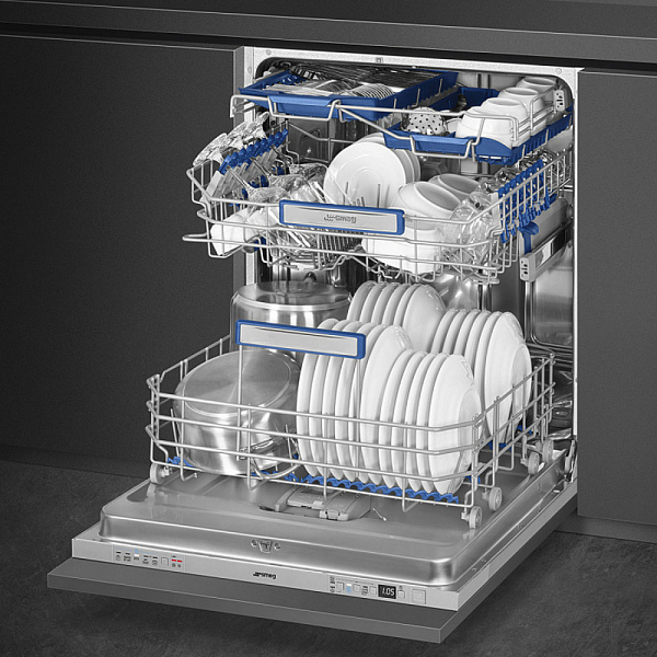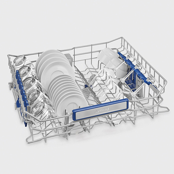 Три корзины позволят разместить посуду равномерно на всех уровнях, таким образом вода будет доставать до самых отдаленных «мертвых» углов и качество мытья будет выше.