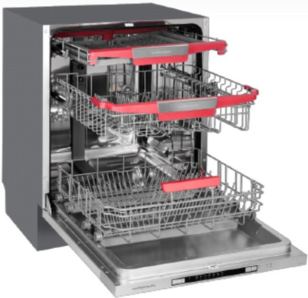 Три корзины позволят разместить посуду равномерно на всех уровнях, таким образом вода будет доставать до самых отдаленных «мертвых» углов и качество мытья будет выше.
