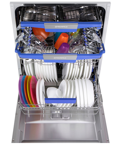 Три корзины позволят разместить посуду равномерно на всех уровнях, таким образом вода будет доставать до самых отдаленных «мертвых» углов и качество мытья будет выше.