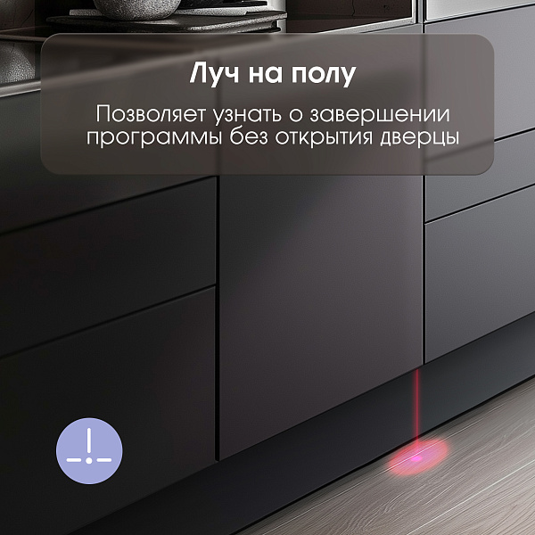 Не в каждой посудомоечной машине есть функция «Луч на полу». Это приятный бонус и удобство пользования прибором, но не первая необходимость, поэтому производители не всегда ее добавляют в функционал.