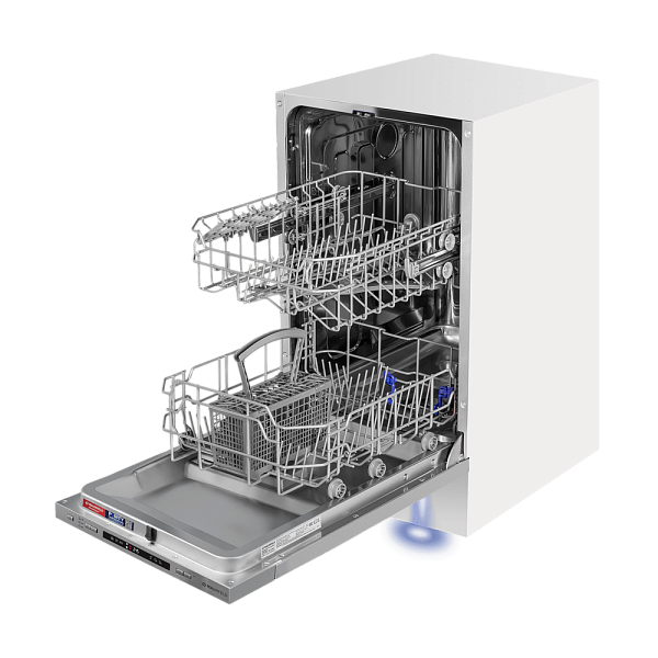 Не в каждой посудомоечной машине есть функция «Луч на полу». Это приятный бонус и удобство пользования прибором, но не первая необходимость, поэтому производители не всегда ее добавляют в функционал.