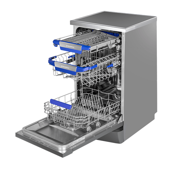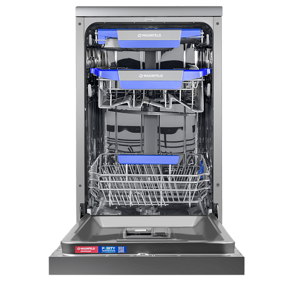 Три корзины позволят разместить посуду равномерно на всех уровнях, таким образом вода будет доставать до самых отдаленных «мертвых» углов и качество мытья будет выше.